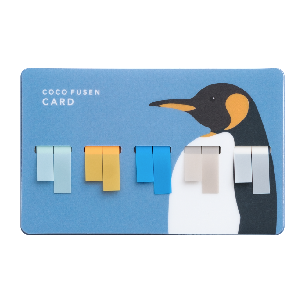 Card with a penguin design and 'COCO FUSEN CARD' text on a blue background