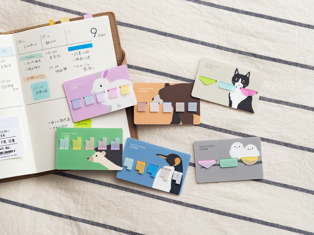 A slim, card-sized case designed to keep index tabs close at hand. The Coco Fusen Card from Kanmido fits neatly into the card pocket of a notebook, planner or wallet - making page marking and note-taking quick and unobtrusive.