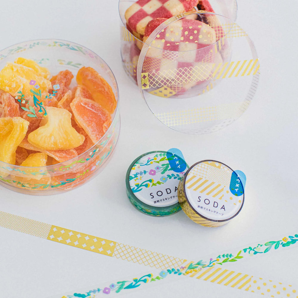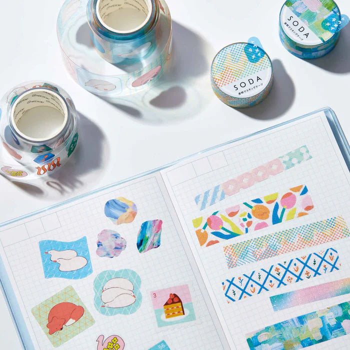 Among their cult favourites is the SODA tape series: transparent washi tapes designed for layering, highlighting, and decorating without visual clutter. Printed on clear film rather than traditional paper, SODA tapes add subtle texture and colour while letting the page beneath show through — a favourite among journalers, designers, and anyone who loves thoughtful detail.